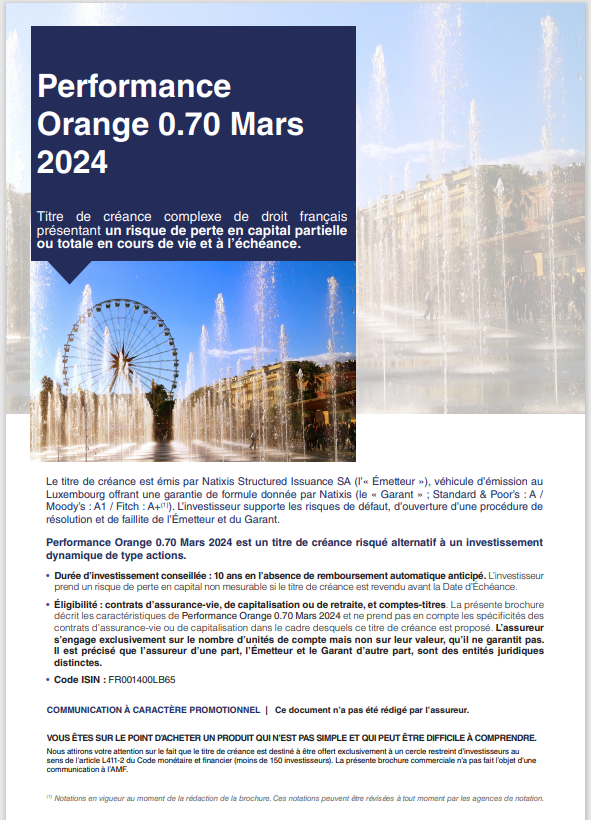 Comment fonctionne votre fonds PERFORMANCE ORANGE 0,70 - Mars 2024 ?
